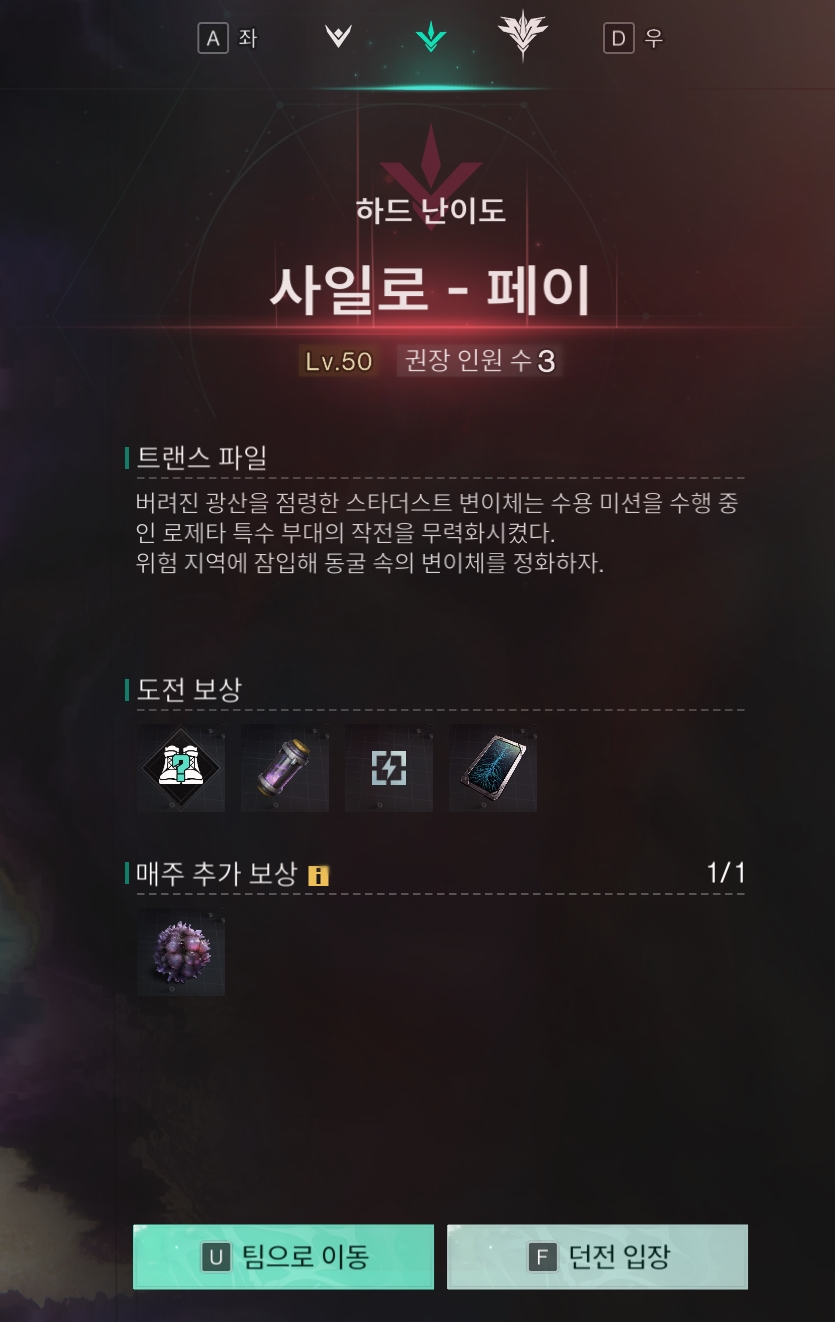 일단 던전은 사일로-페이라는 곳이고 하드가 열렸다면 하드로 돌아준다.
